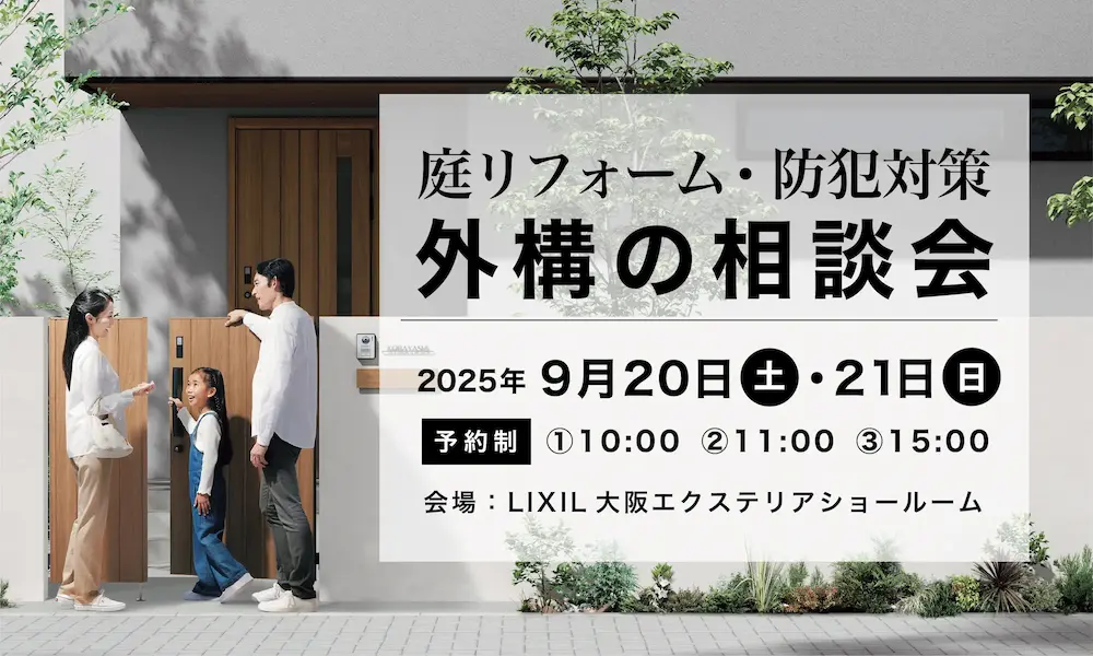 | 開催場所 | リクシル大阪エクステリアショールーム 〒562-0014 大阪府箕面市萱野4-5-45 1F |