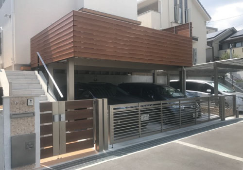 通常駐車の用途でしか使用できないカースペースを最大限利用しての大型バルコニーです。