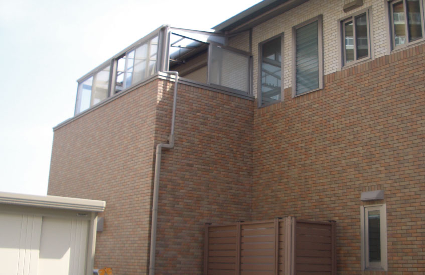 お客様のご要望で二階バルコニーにサンルームを設置しました。