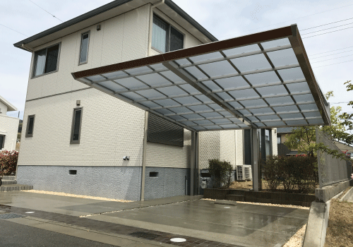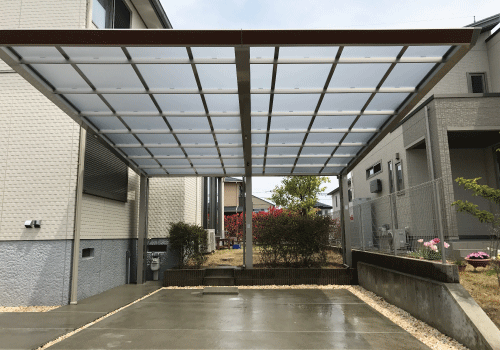 通常の4本柱のカーポートでは柱が邪魔になるため、こちらの商品を提案させていただきました。
