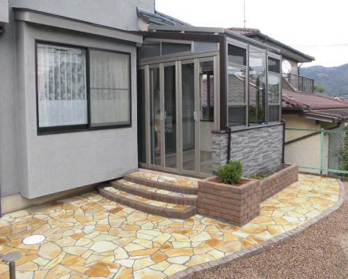 なるべく段差は少なくしてほしいとのお施主様からのご要望でしたので一番ベストな遣り方を検討した結果、外部日除けを庇分カット加工する事にしました。これにより20センチだった段差がほぼなくなる事に成功しました。