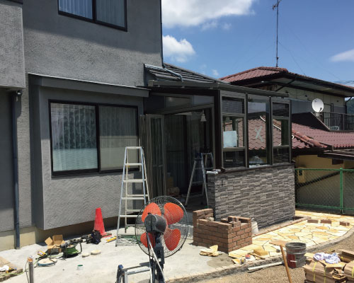 ココマL字腰壁タイプ、外部日除け等の工事です。